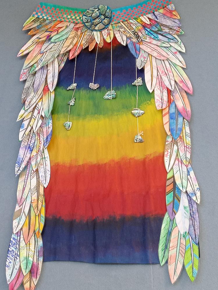 Students were given feather templates to fill however they wanted. Feathers hold profound cultural significance in Maori tradition, adorning the majestic Korowai. Just as each feather in a Korowai tells a story, carrying the mana of the bird it comes from, our feathers carry the individuality and expression of our rangatahi.